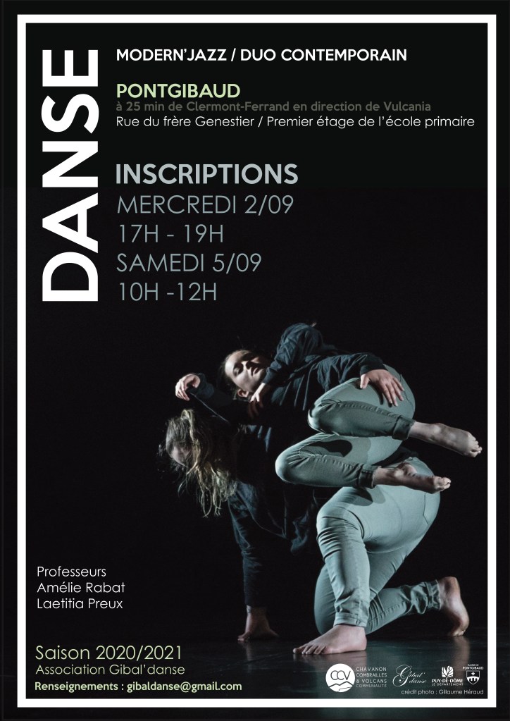 Les cours de danse reprendront la semaine suivant les inscriptions, à savoir le mercredi 15 septembre 2021 au premier étage de l’école primaire, à la salle de danse de Pontgibaud.